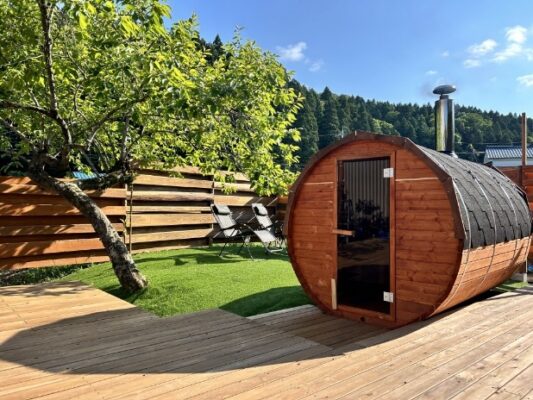 福井市清水畑町の里山に佇む「古民家サウナ ととの居」は、15年間空き家だった古民家をリノベーションした完全貸切プライベートサウナです。薪ストーブで加熱するバレルサウナと、地下水かけ流しの水風呂という贅沢な組み合わせが最大の魅力。年間を通じて水温が安定した地下水は肌触りも良く、ミネラル豊富で身体に優しいと評判です。晴れた夜には満天の星空の下で外気浴ができ、非日常的な体験を楽しめます。1日4組限定・グループ貸切制なので、周囲の目を気にせずカップルや家族・友人グループでゆったり過ごせるのも大きな魅力です。BBQスペースとの組み合わせプランもあり、アウトドアを楽しんだ後にサウナで締めくくる「大人の遊び場」としても人気が高まっています。福井駅から車で約20分と日帰り旅行にも最適な福井の隠れ家サウナです。