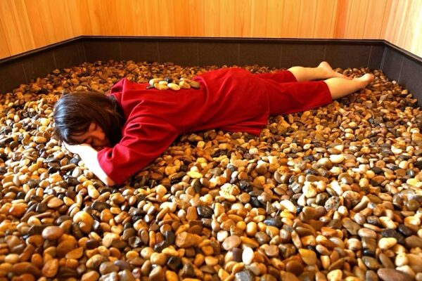 福井市問屋町に構える「STORMY SPA」は、天然薬石浴を中核に据えたユニークな美容複合施設です。15種類の温かい薬鉱石を敷き詰めた浴室に横たわることで、鉱石エネルギーと遠赤外線が身体の深部まで浸透し、短時間で大量の汗とともに老廃物を排出できます。一般の高温サウナとは異なり息苦しさがなく、呼吸しながらリラックスして入れるのが特徴で、サウナ初体験の方にも入りやすいです。男性用・女性用に加え、カップルや友人グループで利用できる貸切個室(プライベートルーム)も用意されており、プライベートな時間をじっくり楽しめます。エステ・脱毛・ヨガ・レンタルスタジオも同一施設内にあるため、1日かけてトータルビューティを満喫できるのも福井では珍しいポイントです。