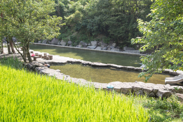 大分県は九州の東部に位置し、九重連山や祖母山などの山々から流れる清流が県内各地に点在しています。日本名水百選に選ばれた河宇田湧水をはじめ、水質が非常に良好な河川が多く、夏には川遊びスポットとして多くの家族連れで賑わいます。大分県の川遊びスポットの特徴は、河川プールとして整備された安全なスポットが多いことです。川の水を引いた25メートルプールや、天然スライダーなど、自然と人工が融合した施設が充実しています。また、温泉地ならではの特色として、河川プールのすぐ横に温泉の露天風呂がある施設もあり、冷たい川の水で遊んだ後に温泉で温まるという贅沢な体験ができます。キャンプ場併設のスポットも多く、川遊びと一緒にバーベキューや釣り、温泉も楽しめるのが大分の川遊びスポットの大きな魅力です。