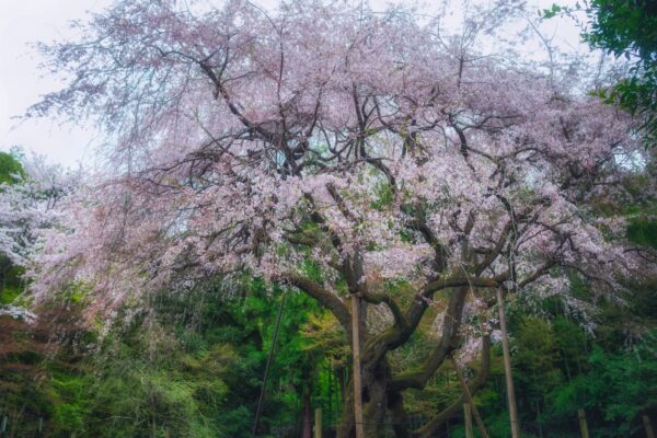 彦根藩主・井伊家ゆかりの「井伊神社」は、歴史の重みを感じさせる厳かな雰囲気が漂う場所です。ここでぜひ目に焼き付けてほしいのが、境内に凛と佇む「しだれ桜」です。ソメイヨシノとは一味違う、滝が流れ落ちるような優雅な枝ぶりが特徴で、歴史ある社殿や鳥居を背景に咲き誇る姿は、一幅の絵画のような美しさを放ちます。しだれ桜特有の濃いピンク色が、神社の静謐な空気に彩りを添え、訪れる人々の心を穏やかにしてくれます。観光の中心地から少し離れているため、比較的静かに参拝とお花見ができるのも魅力です。井伊家の歴史に思いを馳せながら、この気高く美しい一本桜を見上げていると、城下町・彦根の精神性を肌で感じることができるはず。ひっそりと、しかし力強く咲くこの桜は、彦根の春の隠れた逸品としてぜひ訪れてほしい名所です。