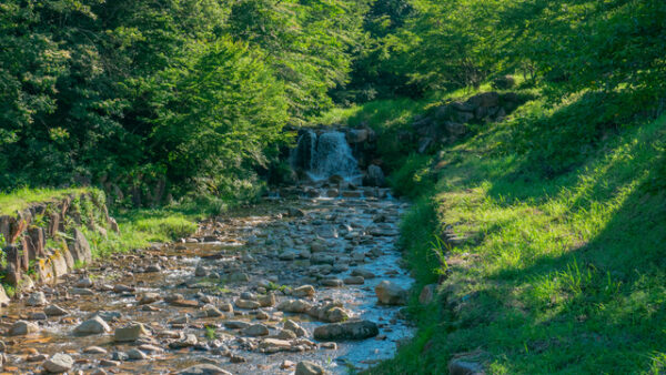 愛荘町にある宇曽川ダムの奥にある山間の渓谷で、人工の滝や段差があり、冷たくてきれいな水で遊べます。鈴鹿山系から湧き出す清流は透明度が非常に高く、水が冷たくてとてもきれいです。人工の滝や段差など、一帯には変化に富んだ地形があり、夏は子どもたちのはしゃぐ楽し気な声が山に響きます。浅瀬もありますが、滑りやすい箇所もあるため、小さいお子さんは目を離さないよう気を付ける必要があります。駐車場や公衆トイレも設置されており、設備も整っています。平成の名水百選に選ばれた「山比古湧水」のすぐそばに位置しており、ペットボトルに汲んで持ち帰ることもできます。