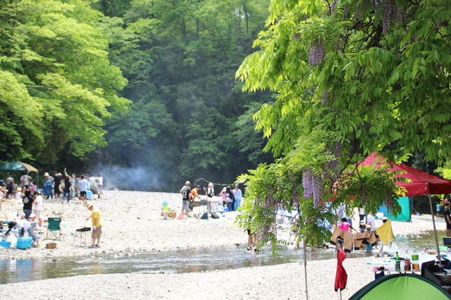 飯能市下名栗にある名栗川沿いのバーベキュー施設です。名栗の中で飯能市街に一番近い日帰りバーベキュースポットとして人気があり、河原も広く川遊びも楽しめます。バーベキュー用品のレンタル、薪や炭、飲み物の販売もあるため、手ぶらで楽しめるのが魅力です。テント付きのバーベキュースペースもあり、雨天時も安心です。名栗川は浅瀬が多く、川幅も広いため、小さな子どもでも安心して遊ばせることができます。水は透明度が高く、冷たくて気持ちが良いです。初心者から上級者まで快適にバーベキューが楽しめる施設で、トイレや水道水・温水シャワー・売店など、設備も充実しています。キャンプ場内で出たゴミは敷地内のゴミ回収場所で捨てられるため、ストレスフリーで楽しめます。