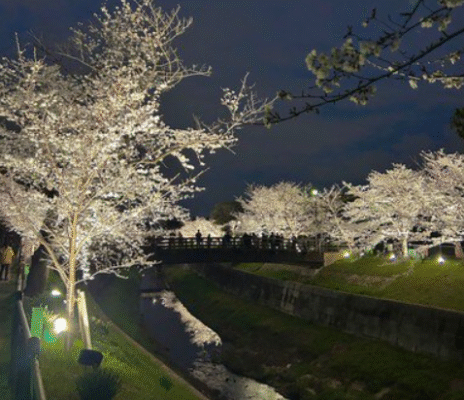 名古屋市内を流れる山崎川沿いの「四季の道」は、日本さくら名所100選にも名を連ねる、全国屈指の桜並木です。約2.8キロメートルにわたって、川の両岸を約600本のソメイヨシノが覆い尽くし、水面にせり出すように枝を伸ばす姿はまさに絶景。散策路が整備されており、静かに川の流れを感じながら歩いていると、桜の美しさに心を奪われるようなワクワクした感動を覚えます。特に「かなえ橋」周辺の古い桜並木は見応えがあり、満開時には圧倒的な桜のトンネルの下を歩くことができます。また、夜にはライトアップが行われるエリアもあり、水面に映る夜桜の幻想的な表情は、都会の中の隠れ家のような静謐な美しさを放ちます。派手な宴会が禁止されているため、純粋に桜の美しさと散歩を楽しみたい方にぴったりの、名古屋が誇る癒やしの名所です。