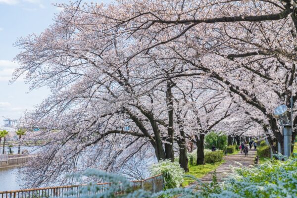 荒子川公園は、荒子川沿いに整備された水辺と緑豊かな公園で、春には約1,000本の桜が川沿いを鮮やかに彩ります。川の両岸に続く桜並木は、散歩やジョギングコースとしても人気があり、水面に映る桜の影を眺めながらのんびりと春を満喫できるのが魅力です。公園内には、本格的な「ラベンダー園」や、日本庭園、噴水など多彩な施設があり、桜のシーズン以外も楽しめますが、やはり春のワクワク感は格別。特に、広い芝生広場でのピクニックは家族連れに大人気で、開放的な空間でお花見を楽しむことができます。あおなみ線からのアクセスも良く、都会の喧騒を離れて水辺の穏やかな空気に包まれながら桜を愛でたい方にぴったりの、名古屋の穴場的お花見スポットです。川風を感じながら、満開の桜並木をゆっくりと歩いてみてはいかがでしょうか。