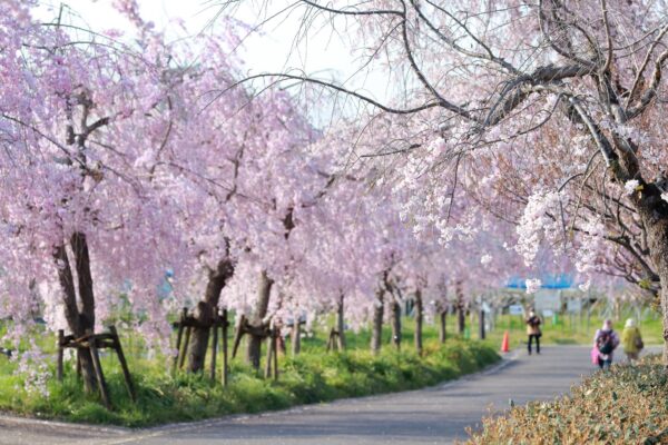名古屋市内で最も高い山、東谷山の麓に広がる「東谷山フルーツパーク」は、世界中の珍しい果樹が見られるユニークな施設で、春には約1,000本の桜が咲き誇ります。こちらの名物は、何といっても約100本の「しだれ桜」です。ソメイヨシノよりも色が濃く、優雅に枝を垂らすしだれ桜がピンクのカーテンのように広がる光景は、訪れる人を圧倒的な美しさでワクワクさせてくれます。園内では「シダレザクラまつり」が開催され、果物などの販売も行われるため、美味しいフルーツを楽しみながらのお花見という、ここならではの贅沢が体験できます。ソメイヨシノの見頃が終わった後も楽しめる遅咲きの品種もあり、長くお花見を堪能できるのも嬉しいポイント。名古屋の市街地から少し離れた落ち着いた環境で、個性豊かな桜と豊かな実りの雰囲気を感じられる、春のお出かけに最適なスポットです。