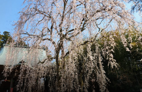 千葉市若葉区にある榮福寺(坂尾の阿弥陀様)は、知る人ぞ知る桜の穴場スポットです。こちらを象徴するのが、千葉市の天然記念物にも指定されている「坂尾のしだれ桜」です。樹齢数百年を数えるといわれる見事な巨木が、地面に向かって滝のように優雅に枝を垂らし、淡い紅色の花を咲かせる姿は、訪れる人を圧倒するようなワクワク感と神々しさに満ちています。歴史ある寺院の静寂な空気の中で、凛として咲き誇る一本桜の姿は、まさに一幅の絵画のような美しさ。混雑する公園とは一味違う、厳かで趣深いお花見を楽しみたい方に最適です。お寺の落ち着いた雰囲気と見事なしだれ桜が織りなす和の絶景に、心洗われる特別な春のひとときを過ごしてみてはいかがでしょうか。