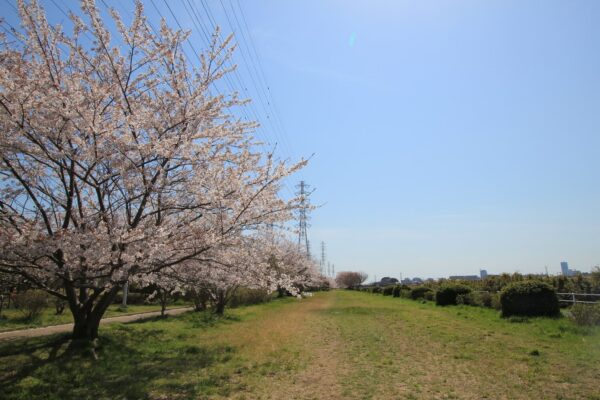 千葉港に面した広大な千葉ポートパークは、潮風を感じながらのお花見ができる開放的なスポットです。シンボルである千葉ポートタワーの足元に広がる緑地に、約450本の桜が植えられています。青い海と空、そして真っ白なポートタワーと薄桃色の桜が織りなすコントラストは、他のお花見スポットではなかなか味わえない爽快感があり、訪れる人を明るいワクワク感で満たしてくれます。お花見の後は、ポートタワーの展望台から東京湾を一望したり、海岸沿いを散歩したりするのもおすすめ。広い芝生エリアがあるため、家族連れがレジャーシートを広げて賑やかにお花見を楽しむ姿が多く見られます。海の恵みと春の訪れを同時に体感できる、千葉ならではのロケーションが魅力です。
