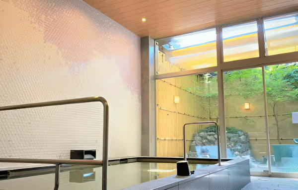 つくばエクスプレス柏の葉キャンパス駅西口から徒歩約5分の「ホテル・トリフィート柏の葉」は、自然と緑を感じるモダンなデザインが心地よいホテルです。1階に男女別の大浴場があり、石造りの高級感ある浴室でゆっくり湯に浸かれます。サウナも併設されていて、テレビなしの静かな空間でじっくり汗を流せるのがポイント。利用者が少ない時間帯を狙えば貸切状態になることも多く、自分だけの時間を過ごせます。脱衣所では湯上がりのアイスキャンディーが無料でもらえるほか、女性側にはシャンプーバーもあり、好みのものを選べるのもうれしいサービスです。