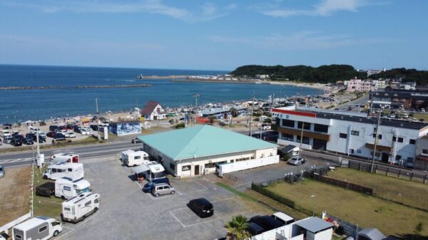 茨城県ひたちなか市阿字ヶ浦町にある「RVパーク ランドポートAjigaura」は、”東洋のナポリ”とも称される阿字ヶ浦海水浴場に面した絶景の車中泊スポットです。全8区画のどのサイトからも、道路を挟んで太平洋を望むオーシャンビューを楽しめる のが最大の魅力。海からの日の出や満天の星空も堪能できます。
