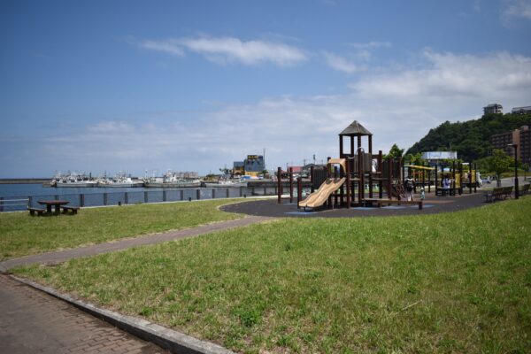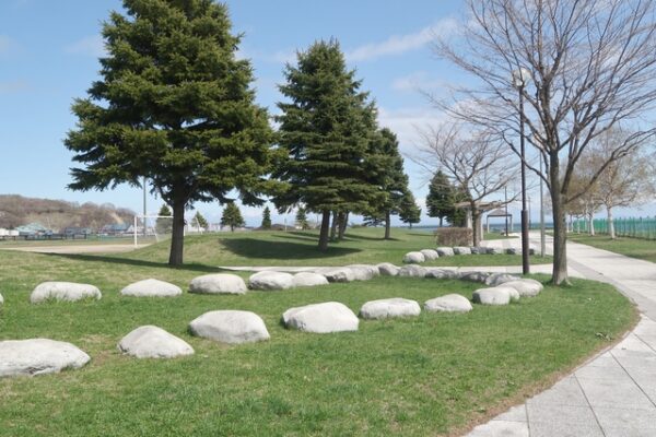 公園から見える日本海の景色は格別で、晴れた日には水平線まで広がる海のパノラマが楽しめます。JR小樽築港駅からも近いため、電車と車を組み合わせた旅にも対応できる便利なスポットです。