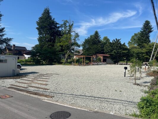 「新軽井沢駐車場」は、軽井沢駅から徒歩約10分に位置する軽井沢町営の大型駐車場です。普通車277台・大型車10台と収容台数が多く、旧軽井沢銀座まで徒歩圏内でアクセスできる好立地が魅力です。24時間営業で無人の自走式駐車場となっており、キャッシュレス決済にも対応。料金は1時間以上4時間未満で300円、12時間以上24時間未満で800円と比較的リーズナブルです。軽井沢大賀ホールの近くにあるため、コンサート利用者にも重宝されています。繁忙期(GW・夏期など)は早い時間帯に満車になることもあるため、早めの到着がおすすめです。軽井沢の観光拠点として使いやすく、旧軽銀座での食べ歩きや散策をたっぷり楽しむことができます。