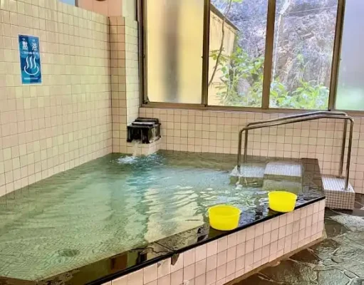 広島市佐伯区の湯来町にある「湯の山温泉館」は、山あいの静かな温泉街にたたずむ日帰り入浴施設です。泉質は単純弱放射能温泉で、無色透明のやさしいお湯が関節痛や冷え性などに効能があるとされています。加温された内風呂でじっくり温まった後は、屋外にある高さ約4mの打たせ湯がおすすめ。こちらは非加熱の源泉かけ流しで、夏場はひんやり心地よく、内風呂との交互浴が格別です。派手な設備はないものの、秘湯のような雰囲気が温泉好きにはたまらないと評判で、地元の方が絶えず訪れる人気の施設です。