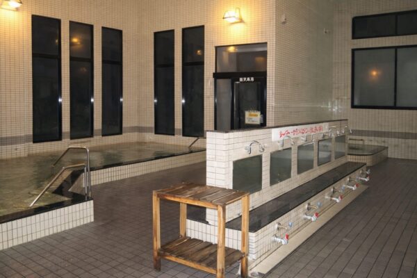 床一面にかけ流しのお湯があふれる浴場は、まるでミスト空間のような心地よさ。番台式のアットホームな雰囲気も含めて、地元に愛される温泉の良さを存分に味わえます。朝5時45分から夜22時まで年中無休で営業しており、駐車場も完備されているので気軽に立ち寄れます。