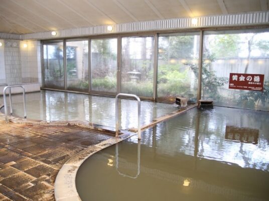 群馬の伊香保温泉で日帰り入浴を楽しむなら、「黄金の湯館」はぜひ立ち寄りたいスポットです。伊香保温泉の代名詞ともいえる茶褐色のお湯は、鉄分を豊富に含んだ源泉かけ流し。ぬるめの湯温でじっくり浸かれるので、体の芯からぽかぽかに温まります。泉質はカルシウム・ナトリウム硫酸塩・炭酸水素塩・塩化物泉で、古くから子宝の湯としても親しまれてきました。天井の高い開放的な大浴場に加え、緑に囲まれた露天風呂では四季の空気を感じながらリラックスできます。冬のキリッとした冷気の中で浸かる露天は格別です。