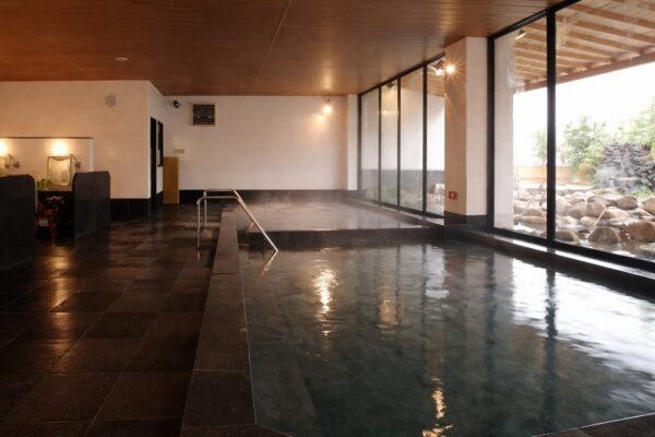 沼津の志下海岸沿いに建つ「KKR沼津はまゆう」は、日帰り入浴も楽しめる温泉宿です。お湯は熱海から直送されたナトリウム・カルシウム塩化物温泉で、塩分を含んだ泉質のおかげで肌がつるつるになると評判。伊豆石を使った落ち着いた雰囲気の大浴場に加え、松林を抜ける潮風と波の音を感じられる露天風呂もあり、海辺の宿ならではの開放感が味わえます。露天風呂は岩風呂にリニューアルされていて、ゆったりとくつろげるのもうれしいポイント。