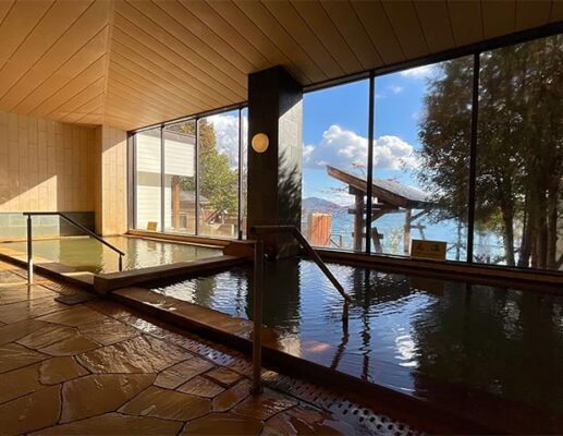 支笏湖の北岸にひっそりと佇む「丸駒温泉旅館」は、大正4年創業の老舗宿で、日帰り入浴も楽しめます。最大の見どころは、全国でも約20か所しかないといわれる足元湧出の天然露天風呂。支笏湖と岩場ひとつで隔てられただけの野趣あふれる造りで、湯の深さが湖の水位に合わせて変わるのも自然まかせならではの面白さです。展望露天風呂からは支笏湖の絶景を一望でき、季節ごとに表情を変える景色に見とれてしまいます。