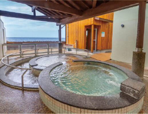 日本海を目の前に望む絶好のロケーションにある「寺泊きんぱちの湯」は、長岡市寺泊エリアで人気の日帰り温泉施設です。こちらのお風呂には、水深200m以上の深海から汲み上げたミネラル豊富な海洋深層水が使われており、一般的な温泉とはひと味違う入浴体験が楽しめます。露天風呂から眺める日本海の夕景は格別で、佐渡島のシルエットが浮かぶ景色にはつい時間を忘れてしまうほど。