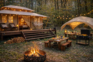 山梨県北杜市、清里の澄んだ空気と開放感あふれる景色に包まれた「Camp inn 清里 グランデール」は、2026年にリニューアルオープンを果たした注目のグランピングリゾートです。宿泊施設として、最大7名まで泊まれる大型グランピングテントや、ホテルクラスの快適性を備えたキャンピングトレーラーが完備されており、八ヶ岳の自然を感じながらのんびりと癒やしの時間を過ごすことができます。こちらの最大の魅力は、全棟に専用ドッグランを完備し大型犬まで一緒に宿泊できる点にあり、家族や友人と愛犬を連れて、周囲に気兼ねなく特別な思い出作りが叶います。2026年からは1日5組限定のオートサイトも新設され、より自由なスタイルでの滞在が可能に。徹底した清掃・消臭によりペット連れでない方も安心して過ごせる清潔な空間で、夜には降り注ぐような満天の星空を独占できる、清里エリア屈指の宿泊拠点です。