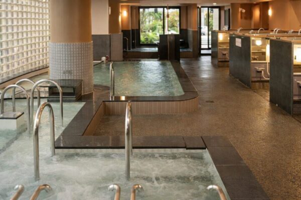 青森市古川にある「青森まちなかおんせん」は、JR青森駅から徒歩約10分の好立地にあるスーパー銭湯です。青森センターホテルに併設されていますが、日帰り入浴も気軽に利用できます。源泉は古川温泉で、ナトリウム塩化物泉のお湯は少しとろみがあり、体の芯からしっかり温まると評判。広々とした内湯のほか露天風呂や薬湯もあり、浴槽のバリエーションが豊富です。子ども用の浅めの浴槽も用意されているので、小さなお子さん連れの家族にも安心。