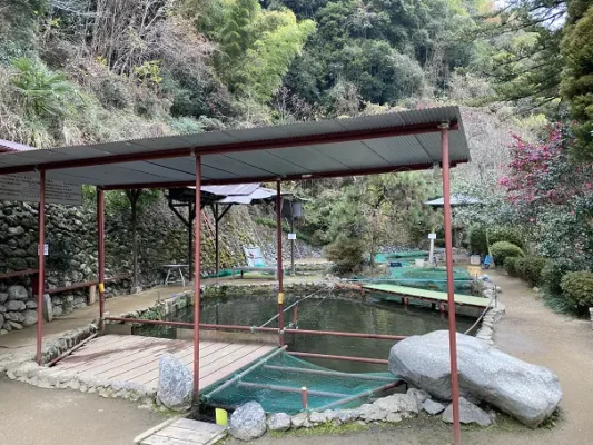 愛媛県内、四国山地の清流沿いに位置する「あまごの里」は、その名のとおりアマゴ釣りに特化した管理釣り堀施設です。四国・愛媛の清流を代表する渓流魚であるアマゴを手軽に狙えるスポットとして、地元の釣りファンから観光客まで幅広く親しまれています。アマゴは美しい朱点模様と鋭い引きが魅力の渓流魚で、釣りの醍醐味をしっかり味わえる魚。「あまごの里」では、そんなアマゴ釣りの楽しさを初心者でも気軽に体験できます。釣り上げたアマゴは、その場で塩焼きにして味わうことができ、自分で釣った魚を食べる特別な体験も魅力のひとつ。竿・仕掛け・餌のレンタルも充実しているため、手ぶらで訪れても安心です。ファミリーやカップル、初めて渓流釣りに挑戦したい方にもおすすめの、愛媛の自然体験スポットです。