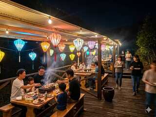 岡山県勝田郡奈義町の川のほとりに位置する「彩灯りnagi riverside base」は、那岐の広大な自然を舞台に、本能を呼び覚ます遊びと心を満たす静寂を同時に堪能できるスポットです。宿泊施設として定員4名用と6名用のグランピングが用意されており、那岐山の鼓動に包まれながら、のんびりと癒やしの時間を過ごすことができます。こちらの最大の魅力は、日本最長クラス20kmのコースを駆け抜ける四輪バギー体験にあり、家族や友人と一緒に泥だらけになって風を切りながら、特別な思い出作りが叶います。夜には幻想的なランタンの灯りに照らされる「セルフBAR」で、那岐山の生きた水を使った一杯を味わう贅沢なひとときも。夏は目の前の川での川遊びや、お好きな食材を持ち込んでの自由なバーベキューも大人気です。宿泊者なら、翌朝にバギーを全力で楽しんだ後、そのままシャワーを浴びてスッキリと帰路につける特権もあり、岡山の遊びを遊び尽くしたい方に最適な宿泊拠点です。