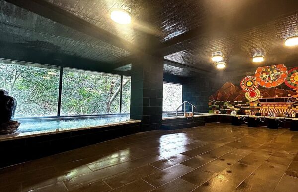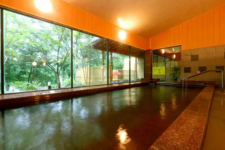 横瀬川の渓谷沿いに建つ「ホテル美やま」では、自家源泉の美やま温泉を日帰りでも楽しめます。pH8.5のアルカリ性のお湯はメタほう酸を含み、肌がつるつるになる美人の湯として親しまれています。大浴場では窓越しに渓谷の緑を眺めながらゆったり浸かれるほか、露天風呂では川のせせらぎを間近に感じられるのが魅力。春は新緑、秋は目の前の紅葉が圧巻で、季節ごとに表情が変わる景色も見どころです。