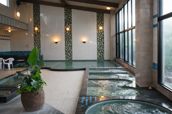 大分市の鶴崎エリアにある「大分森町温泉 やまなみの湯」は、天然温泉をリーズナブルに楽しめるスーパー銭湯です。大浴場は和風と洋風の2種類があり、週替わりで男女が入れ替わるので、通うたびに違った雰囲気を味わえます。和風風呂には滝を眺められる露天風呂や冒険気分が楽しい洞窟風呂があり、お子さん連れにも好評。洋風風呂では迫力あるジェットバスや県内最大級のエステバスが体の疲れをほぐしてくれます。お湯はナトリウム塩化物・炭酸水素塩泉で、ツルツルとした肌触りもうれしいポイントです。