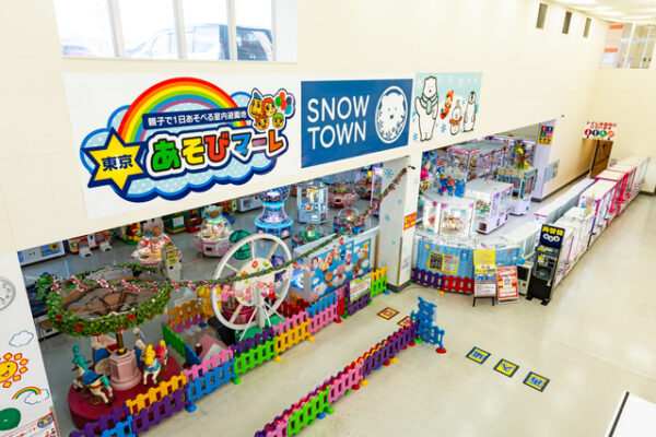 京王堀之内駅直結のビア長池新館2階にある「東京あそびマーレ」は、日本最大級の広さを誇る室内遊園地です。ボールプールやトランポリン、ふわふわ滑り台など体を動かせる遊具がたくさんあり、ゴーカートやミニ電車といった乗り物も子どもたちに人気。一番の目玉は、一年中雪遊びが楽しめるスノータウンです。室温は18〜20℃に保たれていて、長靴の貸し出しもあるので手ぶらで気軽に楽しめます。