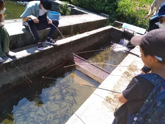 料金 釣竿(エサ付き):100円、釣れた魚:100g250円(買取)