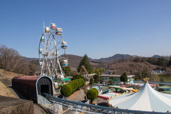 群馬県渋川市の標高460mに位置する「渋川スカイランドパーク」は、伊香保温泉にもほど近い見晴らし抜群の遊園地です。高さ50mの観覧車からは関東平野や谷川岳まで見渡せる大パノラマが広がり、大人も思わず感動する絶景を楽しめます。園内には約20種類のアトラクションがそろっていて、ほとんどの乗り物が幼児から楽しめるのがうれしいところ。ゴーカートやネイブルコースター、日本一大きなエアーすべり台など、お子さんが夢中になれる遊びが盛りだくさんです。
