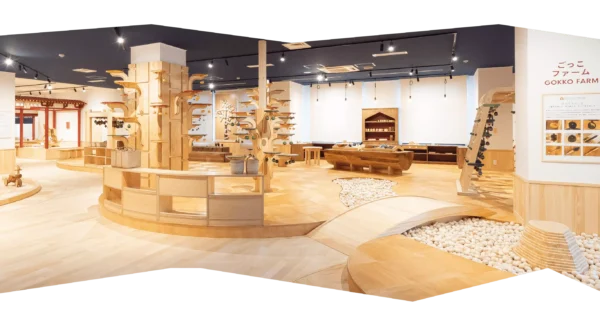 三郷町のFSS35キャンパス内にある「奈良おもちゃ美術館」は、関西初のおもちゃ美術館として2025年にオープンした体験型施設です。吉野杉の香りが漂う館内には約300種類・5000点以上の木のおもちゃがそろい、平城京をモチーフにしたごっこ遊びや大和野菜の収穫体験、木のたまご約2万個を使ったボールプールなど、奈良ならではの遊びを楽しめます。おもちゃ学芸員のボランティアスタッフが遊び方を教えてくれるので、初めてでも安心。赤ちゃん向けの木育ひろばもあり、小さなお子さんから大人まで幅広い世代で過ごせるのが魅力です。1階には絵本やコーヒーが楽しめるカフェも併設されています。