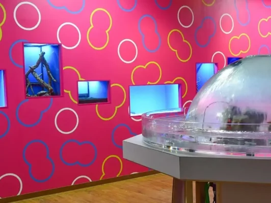 ミ・ナーラ4階にある「NARA IKIMONO MUSEUM」は、爬虫類を中心に約100種類のいきものたちとゼロ距離で出会える体験型ミュージアムです。館内は複数のゾーンに分かれていて、カメレオンやトカゲを間近で観察したり、実際にふれあうことができます。餌やり体験もあり、子どもたちが夢中になれる仕掛けがいっぱい。展示空間はアートのように美しくデザインされていて、フォトスポットとしても楽しめます。最初は怖がっていた子どもが帰る頃には抱っこできるようになったという声もあり、いきものへの興味を広げるきっかけになりそうです。同じフロアの奈良金魚ミュージアムとセットで訪れるのもおすすめです。