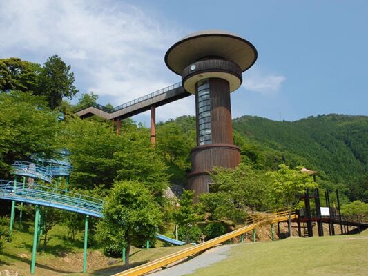 「きのこの森」は、福井県大飯郡おおい町にある、子どもから大人まで楽しめる自然に囲まれた公園です。芝生広場や高さ30mのきのこタワー、ビッグスライダー、ムーンカート広場、トロッコ広場、アスレチックなど、多彩な遊具がそろっており、ほとんどが無料または100円程度で楽しめます。さらに、町の特産品であるキノコに関する展示がある「きのこものしり館」や、バーベキュー施設、陶芸館での体験なども可能で、遊びながら学べる要素も充実しています。広大な自然と開放的な空間で、家族や友人と一日中楽しめるスポットです。