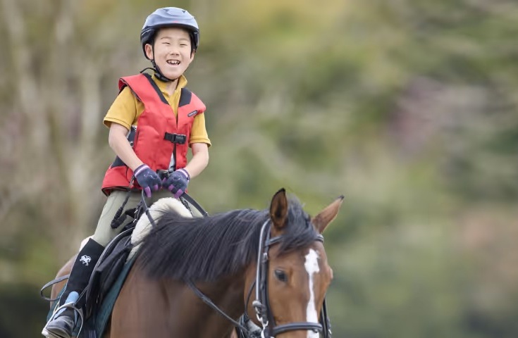 山口県防府市にある「乗馬クラブ クレイン多々良」は、全国展開するクレイングループの牧場で、約50頭もの馬が暮らしています。元競走馬を含むさまざまな性格の馬がそろっていて、初心者にはおとなしくやさしい馬を選んでくれるので安心です。小学生から体験できるジュニアプランやペア・家族向けのプランもあり、親子で一緒に乗馬デビューを楽しめます。