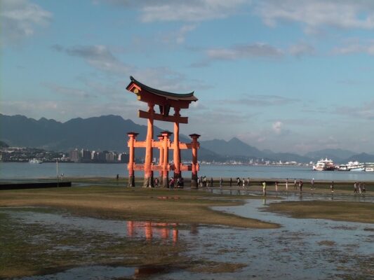 広島県廿日市市の「宮島 大鳥居沖合い」は、世界遺産・嚴島神社の大鳥居を間近に眺めながら潮干狩りができる、他にはないロケーションが最大の魅力です。干潮時に潮位が下がると大鳥居の足元まで砂浜が現れ、観光と貝採りを同時に楽しめます。アサリが採れるスポットとして地元でも親しまれていて、春の大潮の日は多くの家族連れで賑わいます。