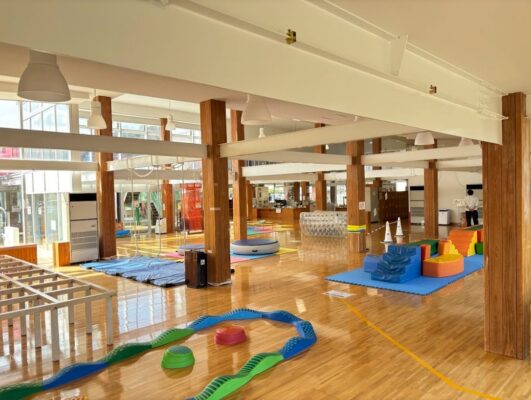 京都府亀岡市の道の駅ガレリアかめおか内にある「かめまるランド」は、ボーネルンドがプロデュースした屋内の遊び場です。主に就学前のお子さんが対象で、天窓から自然光が差し込む明るい空間のなか、のびのびと過ごせます。走ったり跳んだり全身を使えるゾーン、おままごとやブロックでじっくり遊べるゾーン、音の鳴るスツールや大型ブロックで自由に遊べるゾーンなど、年齢や興味に合わせた遊びが充実しています。マグフォーマーやパズルといった知育玩具も豊富で、子どもが何に夢中になるか見守る楽しさもあります。