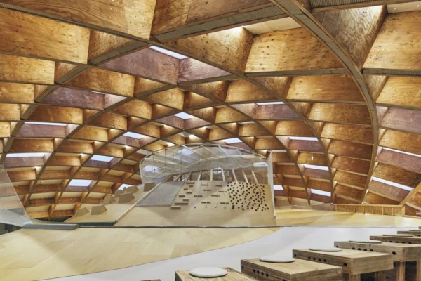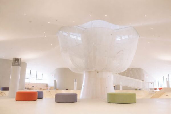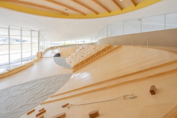 鶴岡市にある「KIDS DOME SORAI」は、遊びを通じて子どもの個性を伸ばすことをコンセプトにした山形の室内遊び場です。建築家・坂茂氏が手がけたドーム型の建物が印象的で、1階の大空間には巨大ネットジャングルや長さ45mの大斜面など、体を思いきり動かせる遊具が並ぶアソビバが広がります。地下にはツクルバがあり、1000種類以上の素材と200種類の道具を自由に使ってものづくりが楽しめます。