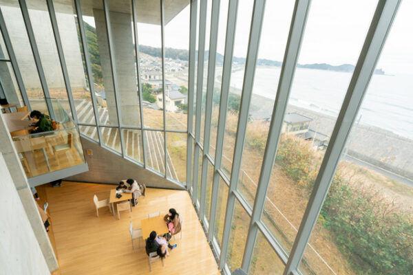 いわき市の海を望む絶景ポイントに建つ「絵本美術館『まどのそとのそのまたむこう』」は、世界的な建築家・安藤忠雄氏の設計によるおしゃれで独創的な美術館です。もともとは幼稚園の附属施設として建てられましたが、その圧倒的な美しさと約1万冊に及ぶ絵本のコレクションが話題となり、全国からファンが訪れるようになりました。コンクリート打ち放しの壁面と、海に向かって大きく開かれた窓、そして壁一面を埋め尽くす色鮮やかな絵本の背表紙。それらが作り出すコントラストは、まるで映画のワンシーンのようです。いわきの青い海を背景に、子供から大人まで夢中になって本をめくる時間は、他では味わえないクリエイティブなひととき。建築ファンにとっても聖地のような場所であり、いわきの新しい観光名所として注目されています。日常を忘れ、絵本の魔法にかかるような不思議な体験を楽しんでみませんか。