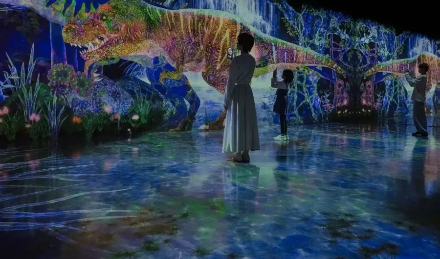 PayPayドームそばのBOSS E・ZO FUKUOKA 5階にある「チームラボフォレスト 福岡 – SBI証券」は、デジタルアートの世界にからだごと飛び込める福岡市ならではの室内遊び場です。スマホを使って動物を捕まえる探索型の空間と、でこぼこの地形やふわふわの床を歩きながらからだを動かす運動の森の2エリアで構成されていて、子どもも大人も夢中になれます。自分の動きに合わせて映像が変化していくので、何度訪れても新鮮な体験ができるのがポイント。