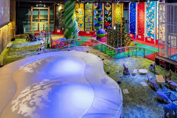 愛媛の室内で思いきり遊べる場所をお探しなら、松山市のキスケBOX3階にある「空想こども天国 KIT PLAY」は見逃せません。中四国最大級の全天候型キッズパークで、高さ6.5mのカラフルクライミングやネット遊具のアミアミツリー、トランポリンなど体を使ったアトラクションが充実しています。2025年には新エリアのキット砦も加わり、さらに遊びの幅が広がりました。