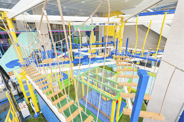 愛媛で室内の遊び場を探している方に注目してほしいのが、四国最大級のショッピングモール・エミフルMASAKI別棟にある「トンデミ愛媛 エミフルMASAKI店」です。バンダイナムコが手がける次世代型の屋内アスレチック施設で、全42面のトランポリンエリアや最大6mのクライミングウォール、ロープウォークなど20種類以上のアクティビティが楽しめます。小さなお子さま向けのキッズエリアもあるので、幅広い年齢の子どもが夢中になれるのがうれしいポイント。