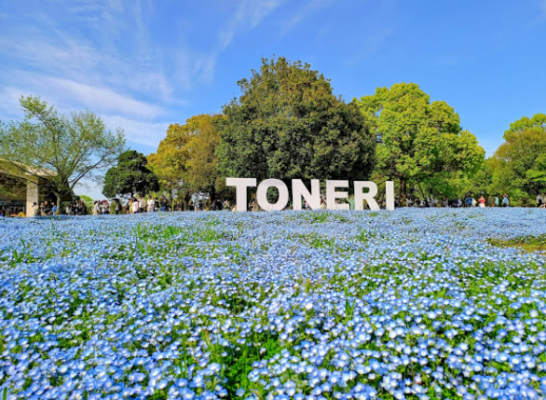 「舎人公園」は、都内にありながら広い空と緑を感じられる公園で、春にはネモフィラの青い花景色を楽しめます。芝生広場や遊具、じゃぶじゃぶ池などもあり、子どもと体を動かしながら過ごせるのがうれしいところ。ネモフィラを関東で気軽に見たい家族や、のんびり散歩デートを楽しみたいカップルにも合いますよ。園内が広いので、花を見たあとにレジャーシートを広げて休む時間も作れます。