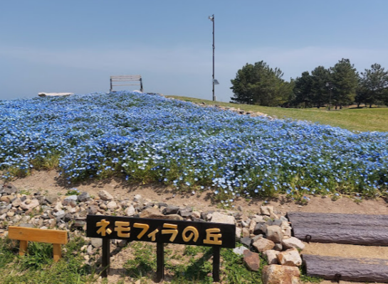 南海本線の淡輪駅から徒歩約10分、箱作駅からも歩いて行けます。大阪でネモフィラと海の両方を楽しめる場所は珍しいので、春のおでかけ先として要チェックです。
