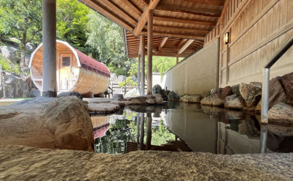 氷見の里山にたたずむ「湯の里 いけもり」は、日本の秘湯64選にも選ばれた天然温泉が楽しめる宿です。敷地内から湧く源泉かけ流しのお湯はナトリウム塩化物泉で、肌がつるつるになる美肌の湯として知られています。緑に囲まれた露天風呂では、鳥の声を聞きながらのんびり浸かれるのがうれしいところ。別館AMAZAには貸切露天風呂があり、カップルや家族だけでゆっくり過ごせます。ひみ里山杉のバレルサウナも好評で、セルフロウリュも体験できます。