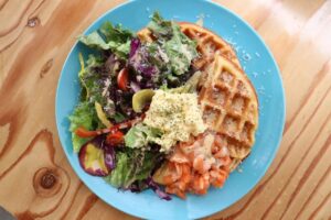 川越の南通町に位置する8+8Cafeは、農と食を直接結びつけることを大切にする農カフェです。店名の由来は、米という文字が八十八と書くこと、米づくりには88の手間がかかること、そして1粒の米には88人の神様がいることから名付けられました。川越駅から徒歩7分ほどの場所にあり、ガラス張りの明るい店内が特徴。自らの手で育てた無農薬の野菜やお米を午前中に持ってきて午後には食材として提供するという、まさに産地直送の農カフェです。おむすびランチやカレー、そして米粉100%で作ったシフォンケーキなど、お米の味を感じられるメニューが豊富。川越観光の合間に、安心安全な食材を使った料理を楽しむことができます。Wi-Fiやコンセットも完備されており、仕事にもプライベートにも使い勝手の良い川越の新しいカフェです。
