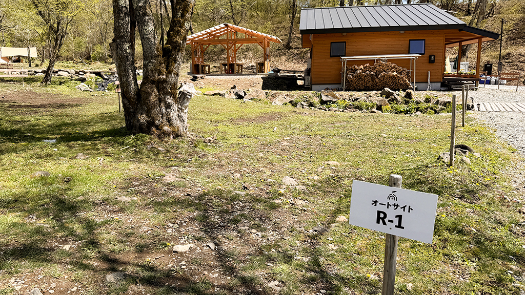 Rサイトは区画ごとに形がやや異なるため、大型テントは区画との相性確認が安心です。 - 地面