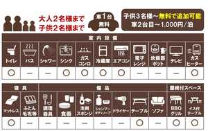 ※全サイト・全施設ともに1家族(大人2名様+子供)、ソロ、カップル・デュオに該当するお客様のみご利用可能となります。
