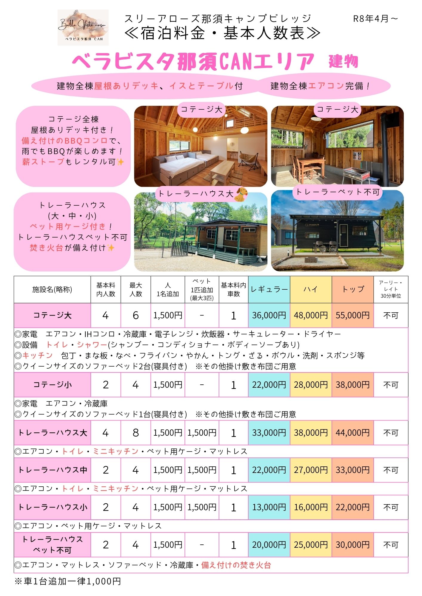 ・車2台以上でご利用の場合 1台追加+1000円