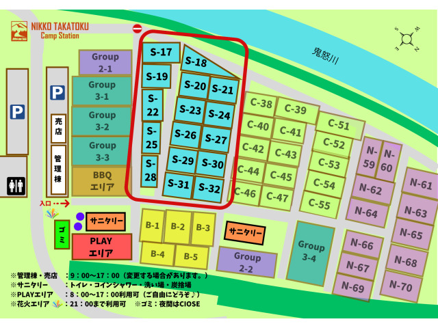 • 台風や増水及び大雪等の自然災害によりキャンプ場の判断で施設全体を封鎖する場合
